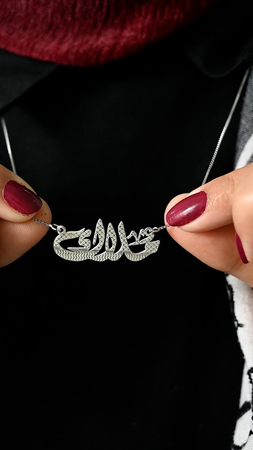 سنسال تفصيل فضة اسم مع نقش الكوفية
