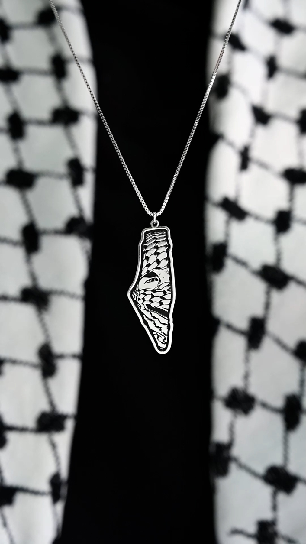 Holy Land map keffiyeh silver necklace 925