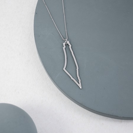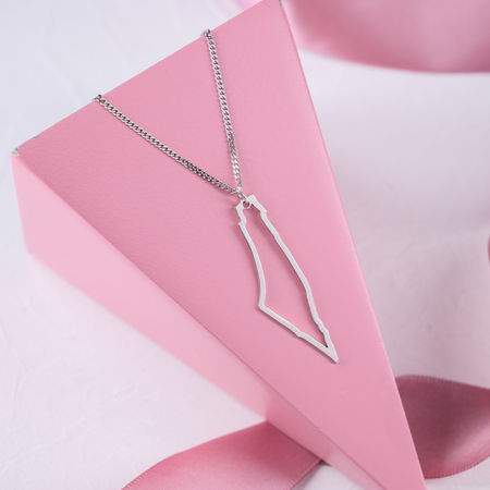 Silver Holy Land Map Frame Necklace With Name 925