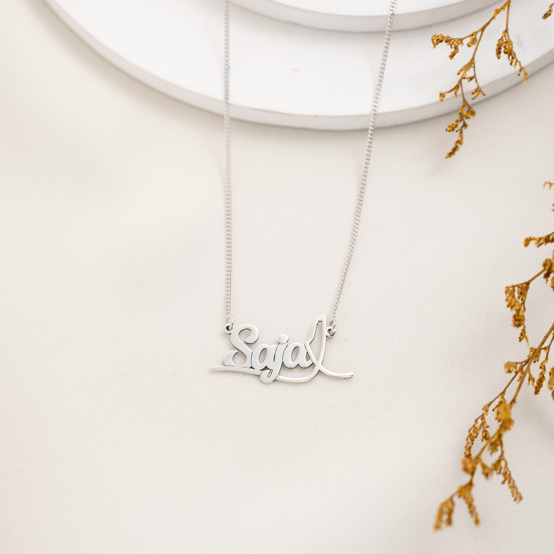 Silver Name Necklace with Palestine Map 925