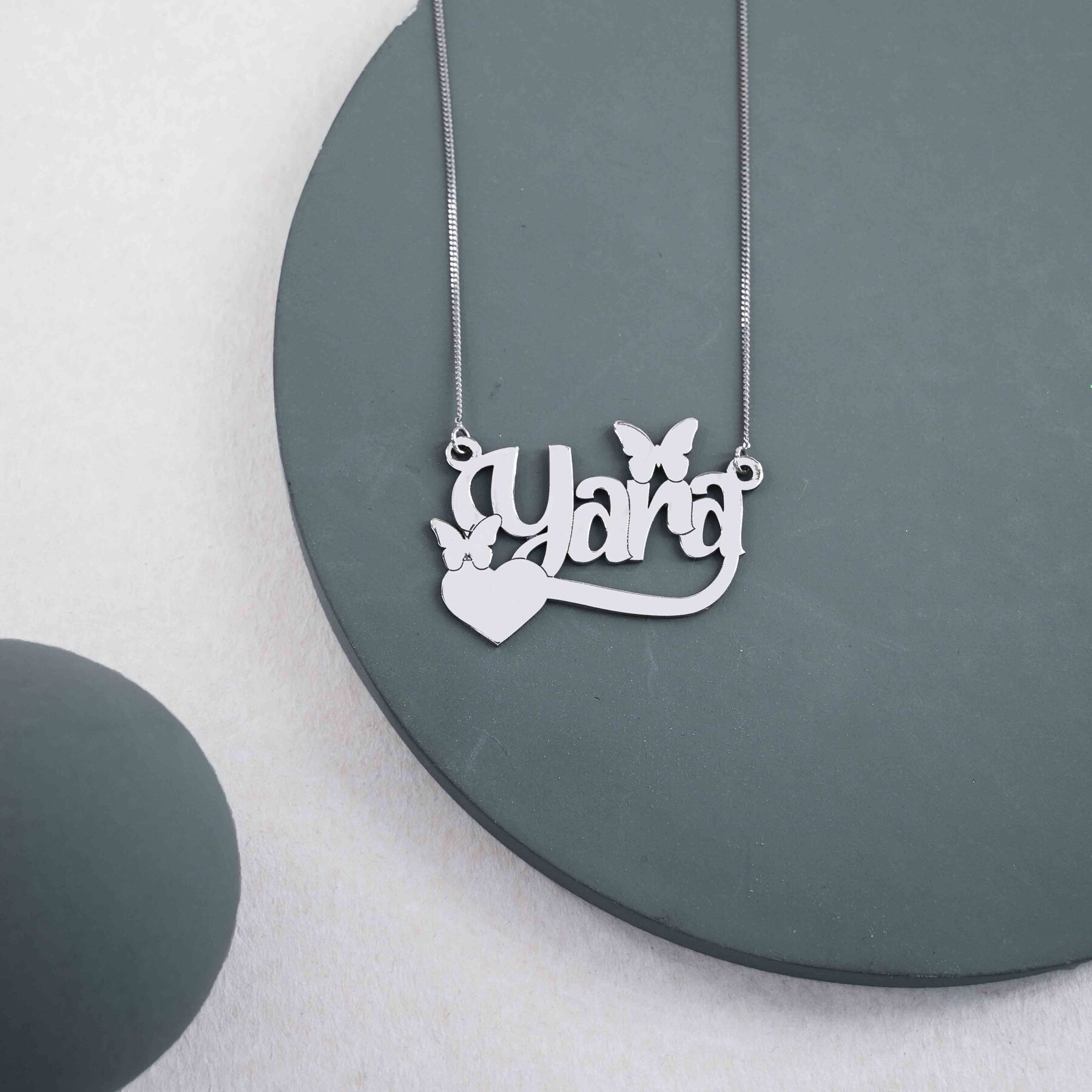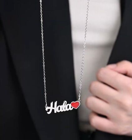 سنسال تفصيل اسم فضة مع قلب أحمر