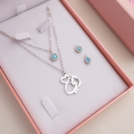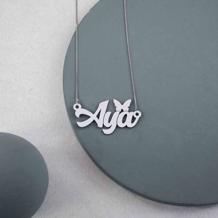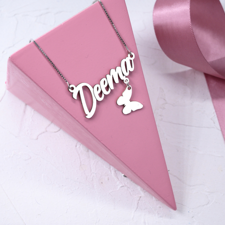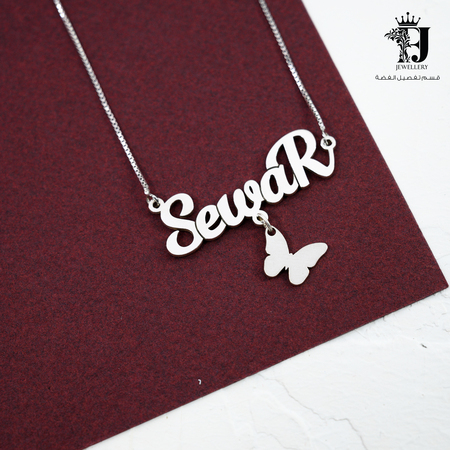 سنسال تفصيل اسم فضة مع فراشة ومع قلب
