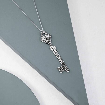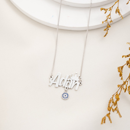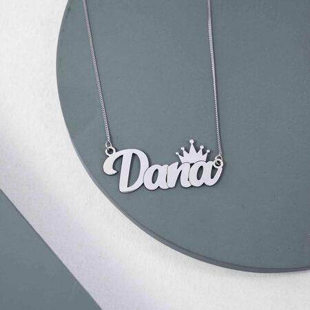 سنسال تفصيل فضة اسم مع شكل التاج وخرزة