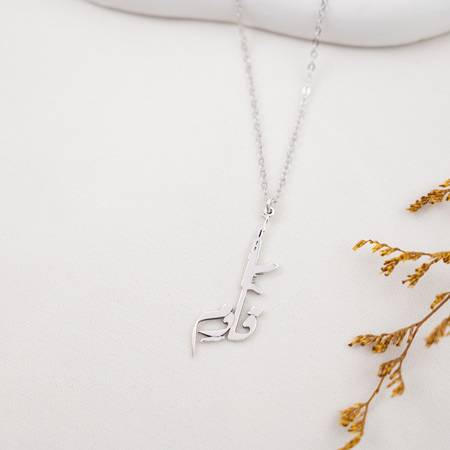 سنسال تفصيل فضة شكل سلاح مع كلمة قاوم